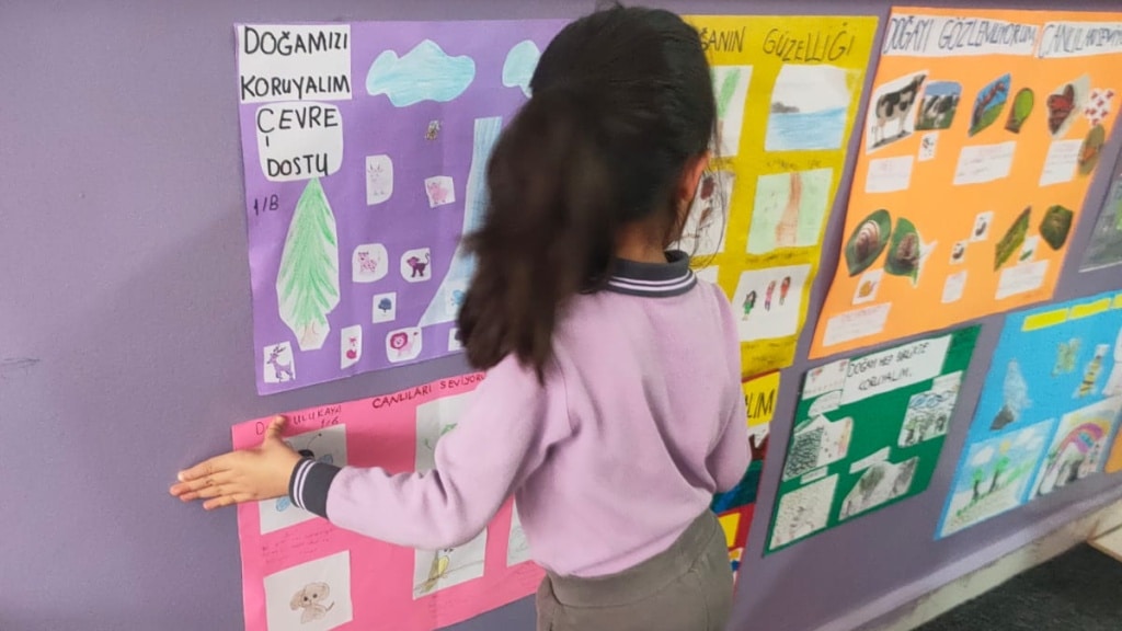 Enerji Dostu Mavi Yeşil Okul Projesi Kapsamında 1/B sınıf öğretmenimiz Filiz ŞAHİN ve öğrencileri afiş çalışması yaptılar. Minik eller kocaman işler başardı. Öğretmenimize ve öğrencilerimize bu güzel çalışmaları için teşekkür ederiz.